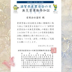 この度「滋賀県産業安全の日 無災害運動」に参加し、